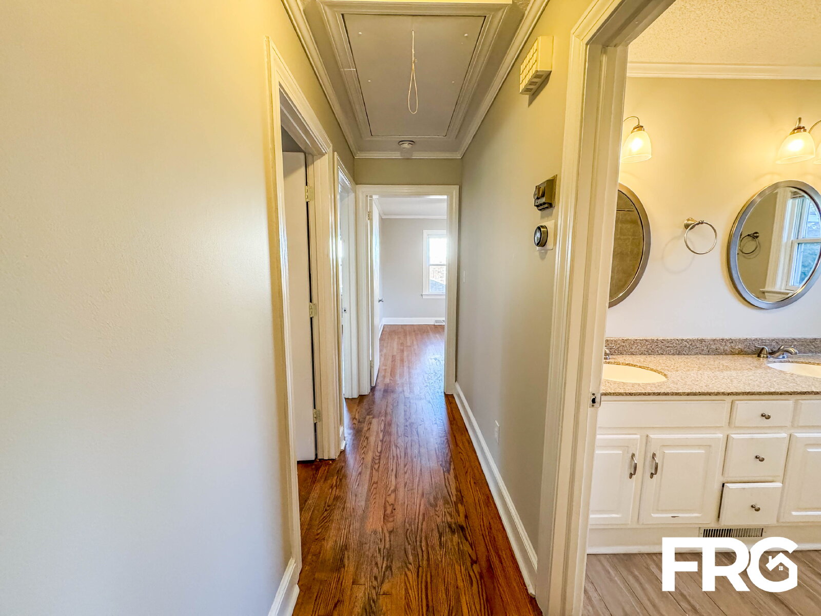 Hardwood floors add a touch of timeless elegance throughout the home, enhancing its overall charm and character. The hardwood flooring is not only visually appealing but also easy to maintain, ensuring both style and practicality.